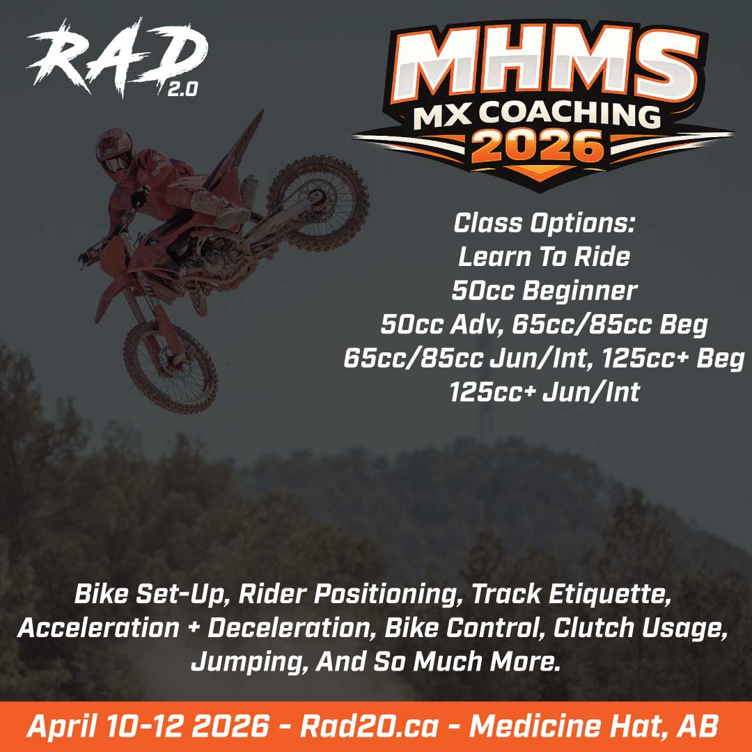 Join Shane Cuthbertson and the RAD 2.0 team April 10-12 in Medicine Hat, Alberta for two full days of motocross coaching designed for all skill levels. We’ve once again teamed up with the awesome crew at the Medicine Hat Motocross Society (MHMS), and we’re extremely excited to bring RAD 2.0 coaching back to this incredible facility.